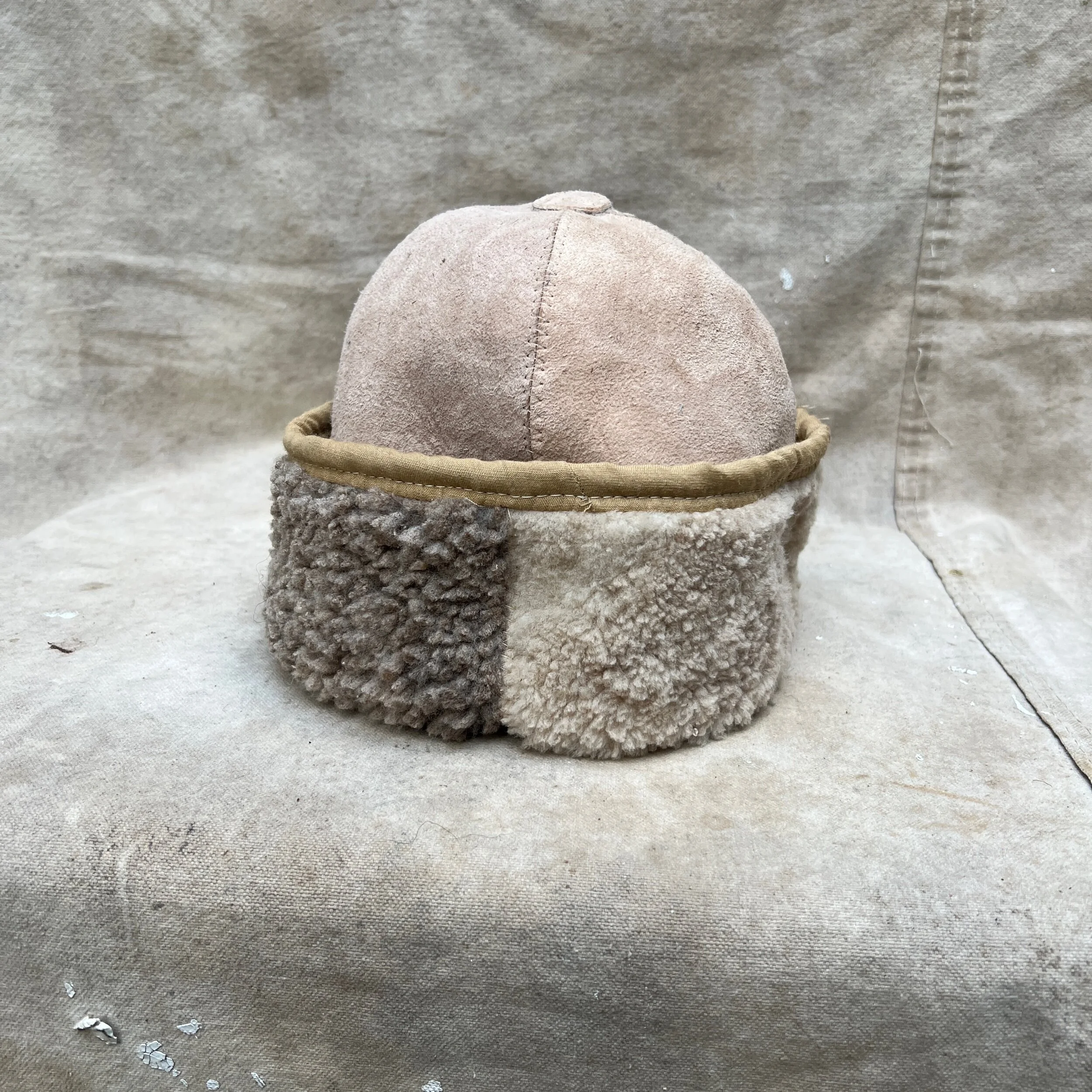 4 paneled sheepskin cap made with organically tanned sheepskins. fold can be adjusted to sit lower over the ears or higher for a truly ancestral look. cap measures 24” circumference